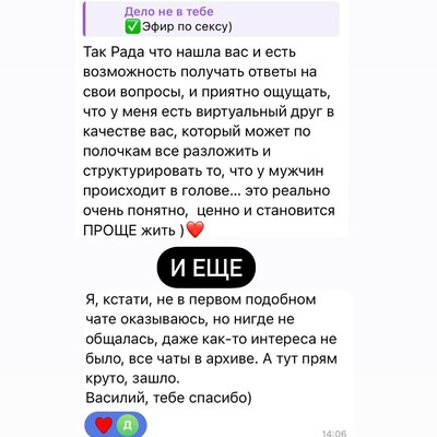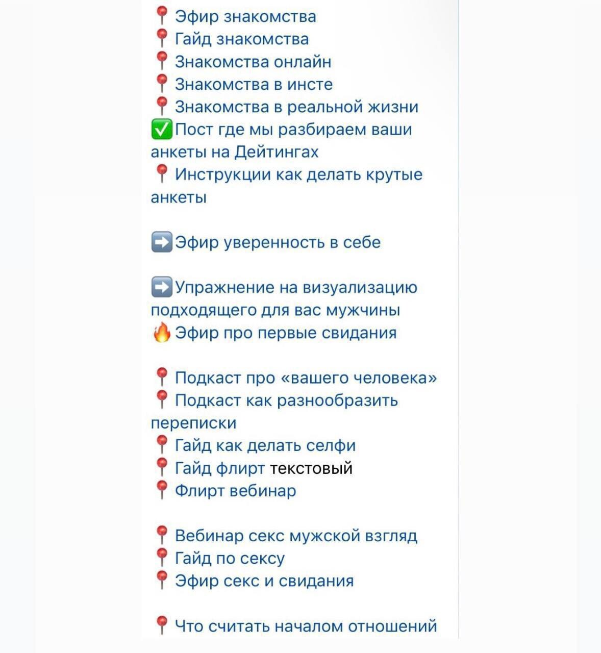 1)огромная база контента по отношениям, свиданиям и сексу. Эфиры, подкасты, гайды.